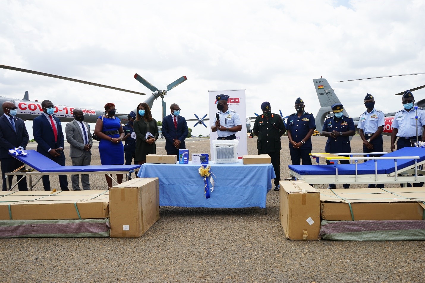 The Ghana Air Force’s Chief of Air staff, Air Vice Marshal Frank Hanson lead a delegation to receive the items. He commented that GLICO has been one of the lifelines to the Ghana Air Force. “We take this opportunity to say thank you to GLICO for their constant support and promise that this donation will be put to good use as we fight COVID-19 together”.