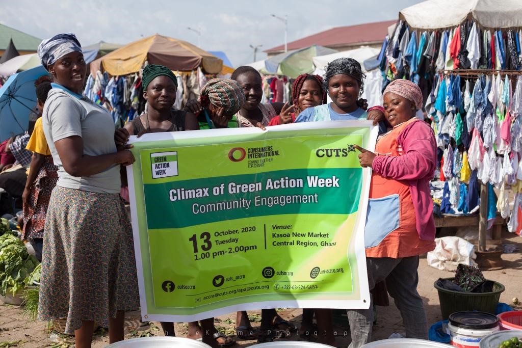 As part of activities to climax Green Action Week Campaign 2020, CUTS Ghana, a research, consumer protection and public policy think tank with support from Consumer International, has educated market women at Kasoa in the Central Region on innovative measures to reduce the amount of waste they generate at the markets and at home.